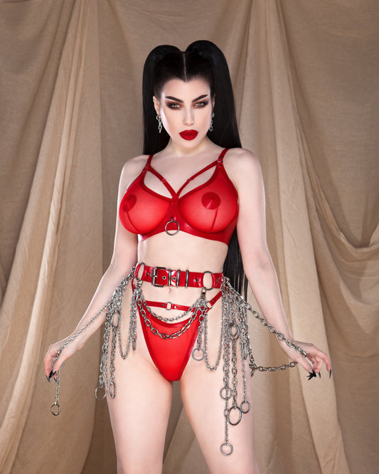 Red Crossover Latex Bra - READY TO SHIP