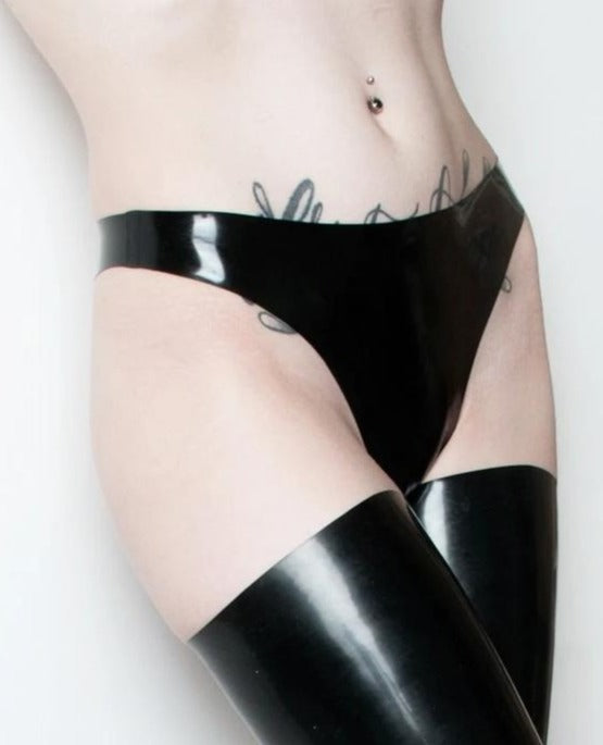 The latex thong is simple, yet elegant, and a staple part of any latex wardrobe. The edges are hemmed to ensure optimum fit and durability. Other sizes and colours available as made to order - this is a listing for sizes available ready to ship in black.