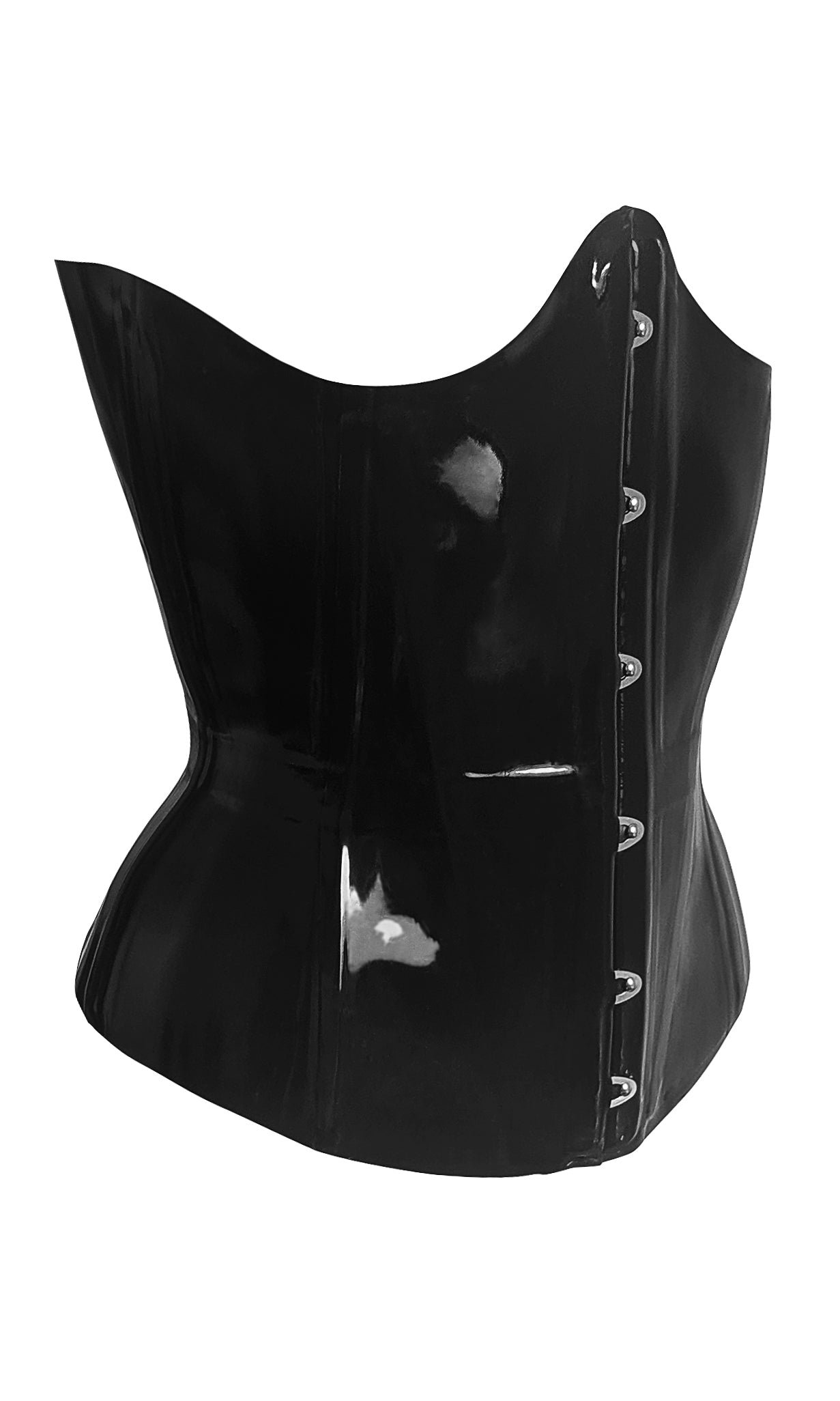 Our underbust latex corset is perfect as a staple to any latex wardrobe. Its shape is also well-suited for being worn over or under other garments. Reduces the waist by around 4 inches on average.